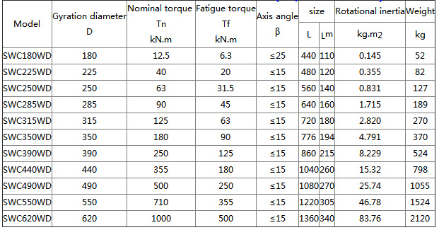 The SWC-WD type telescopic short universal joint is one of the most commonly used couplings. By utilizing the characteristics of the structure, it is possible to continuously rotate the two axes at different angular speeds or large axial movements without the same axis or axis, and reliably transmit torque and motion. Can be widely used in metallurgy, lifting, engineering transportation, mining, petroleum, shipbuilding, coal, rubber, paper machinery and other heavy machinery industry to transmit torque in the mechanical shafting. The main features of the SWC-WD cross-shaft universal coupling are: 1. Has a large angle compensation capability. 2. Compact and reasonable structure. The SWC-WD features an integral fork for more reliable carrying. 3. Large carrying capacity. Compared with other types of couplings with the same diameter of rotation, the torque transmitted is larger, and the matching range of the mechanical equipment with limited rotation diameter is superior. 4. Transmission efficiency is high. Its transmission efficiency is 98-99.8%, which is used for high-power transmission, and the energy-saving effect is obvious. 5. The carrier is stable, the noise is low, and the assembly, disassembly and maintenance are convenient. BH type - standard telescopic welding type; BF type - standard telescopic flange type; DH type--short telescopic welding type; CH type - long telescopic welding type; WH type - no telescopic welding type; WF type - no telescopic flange type; WD type - no telescopic short type; ![]() ![]() |