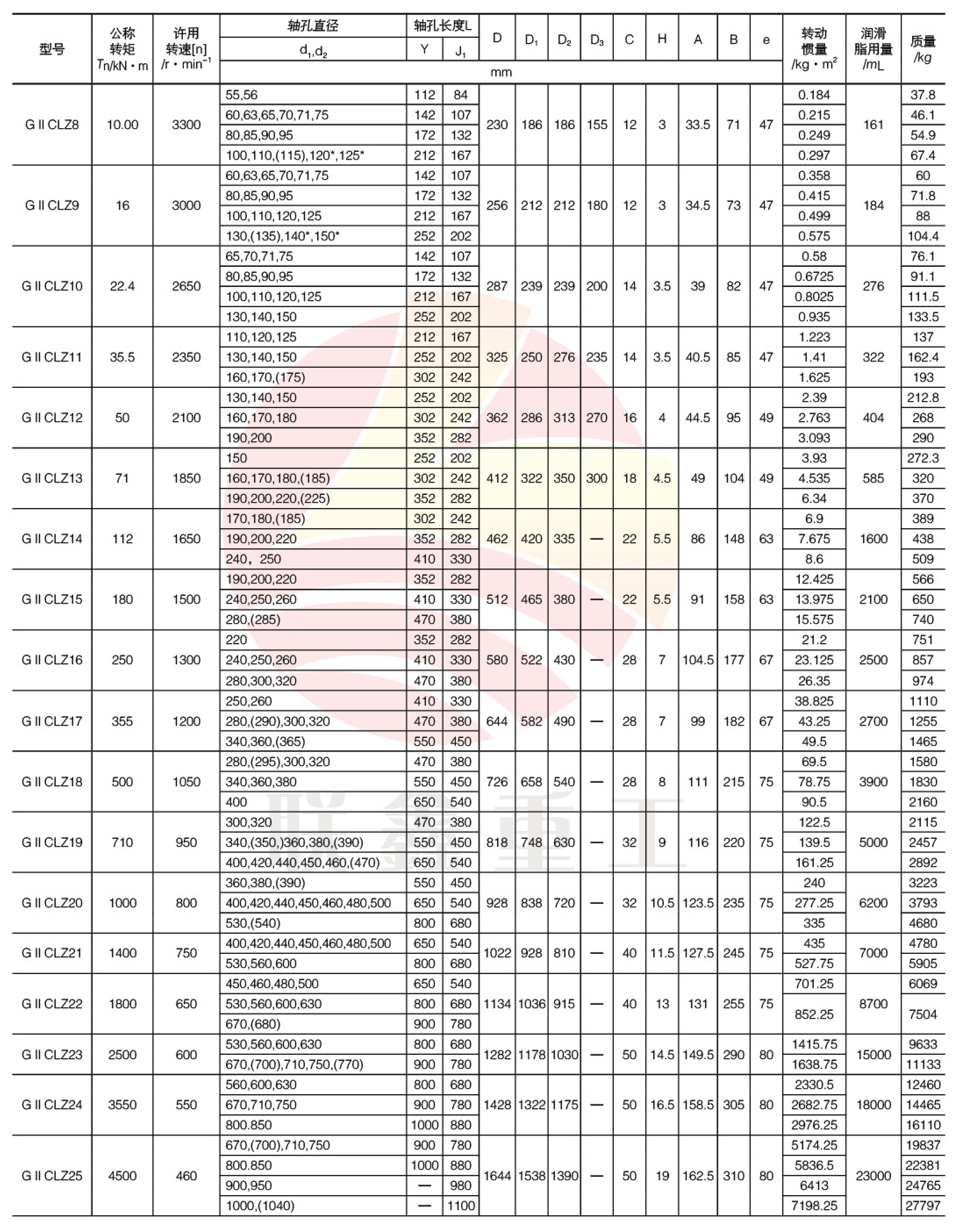 GIICLZ型--中间轴型(窄型);