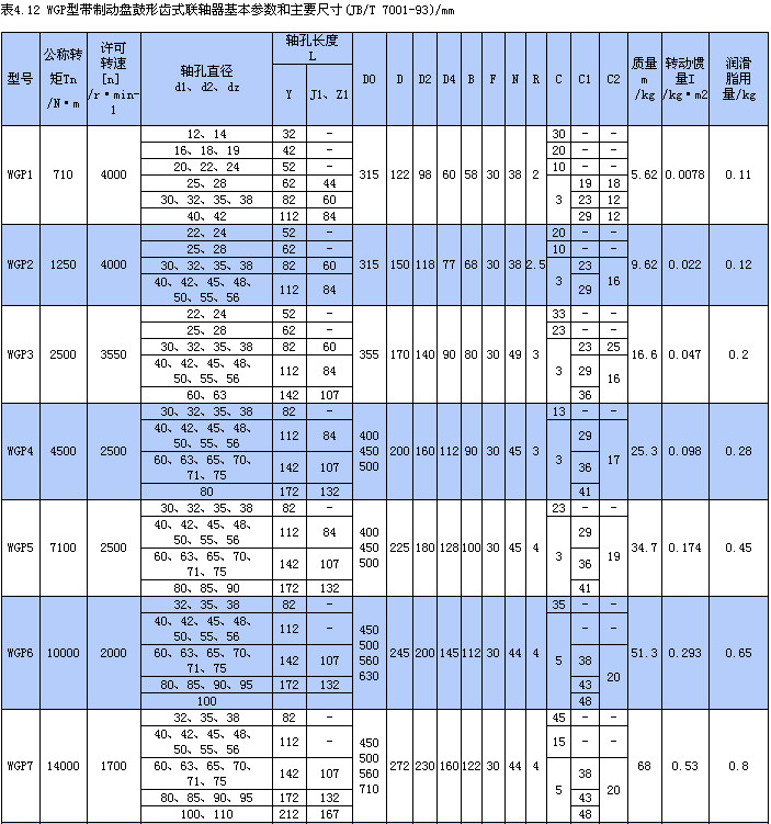 WGT型--接中间套型,适用于两轴长距离联接,许用转速[n]取决于中间套的长度和质量,并应验算临界转速;