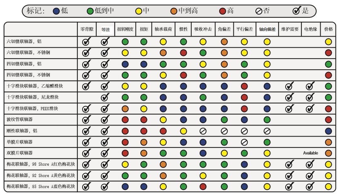 伺服联轴器关键性能比较