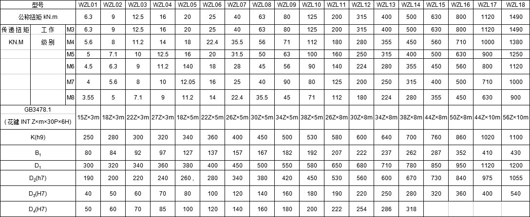 WZL内花键卷筒联轴器主要参数及尺寸: mm